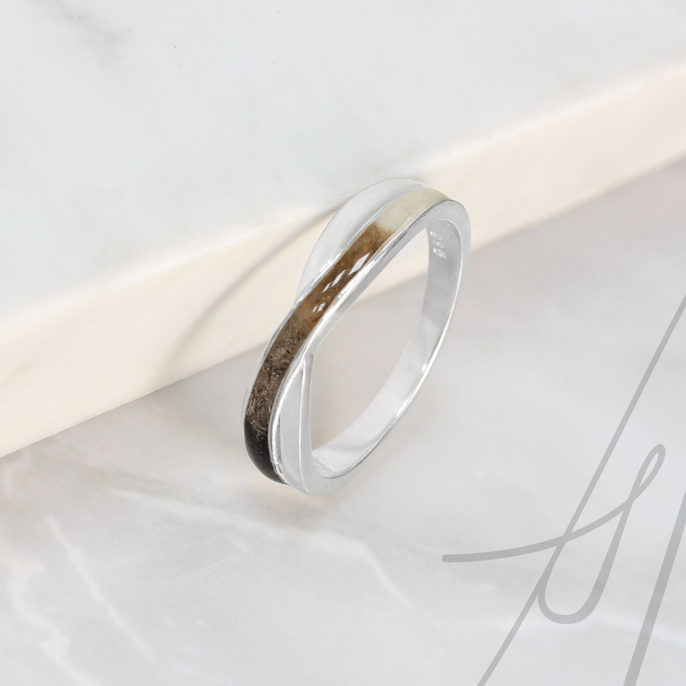 Anillo con Pelo de Mascota en Banda Cruzada de Plata